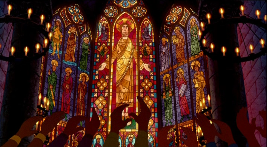 To be clear, the history of the Catholic church though founded on beautiful principles became twisted in time as secular and religious authority combined {Out of necessity of course} and corruption came to its height in the 15th and 16th century that persisted until the Reformation. To try and separate religion from Hugo’s works would be incredibly unwise and impossible. Consequently, Hunchback is also one of the few Disney movies that incorporates heavy Christian themes. The most notable of these is in the infamous scene where Esmeralda sings a prayer in Notre Dame, remembered as “God Help the Outcasts”.