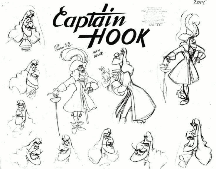 Frank Thomas was the leading director for Captain Hook’s design. I thoroughly enjoy watching Captain Hook and how sporadically his moods change. I love it when characters don’t remain a single personality or look an entire film, hence why I like Genie as well. As for Hook, I love his many different facial expressions that range from downright furious, devious, exasperated and delusional. My favorite scene, which shows his most radical changes, is when the crocodile comes. His mustache twitched with each striking of the clock and his eyes bulged in fear. When he falls into the water, oh how I love watching him swimming from one end of the crocodile to the other and screeching like a girl. I also like his voluptuous hair, lean build and most importantly his stately mustache. He also has a big nose!