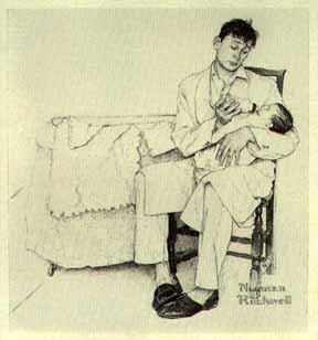For today, I decided to host a series of paintings depicting father figures. Since yesterday was Father’s Day, I think this is definitely appropriate. Norman Rockwell is indeed one of the best choices. The overall feel and attitude of his art works focused heavily on the family, love, and patriotism. Sadly, his personal life never truly mirrored the happiness and purity of his work. Truly, he painted what he wished he could have himself and perhaps what all people wish for. Born 1894 in New York City, Rockwell painted for notable magazine The Saturday Evening Post for over fifty years, his most famous works including Rosie the Riveter (1943) , Saying Grace (1951) and The Problem We All Live With (1964).