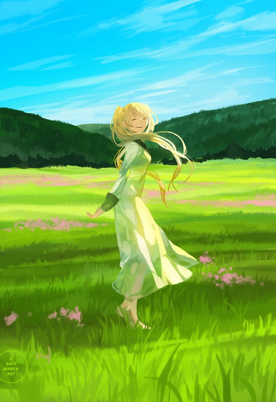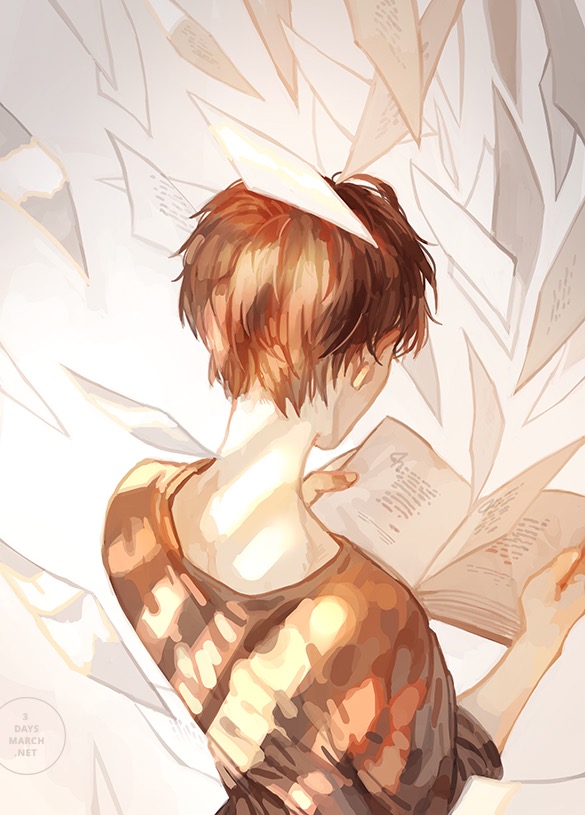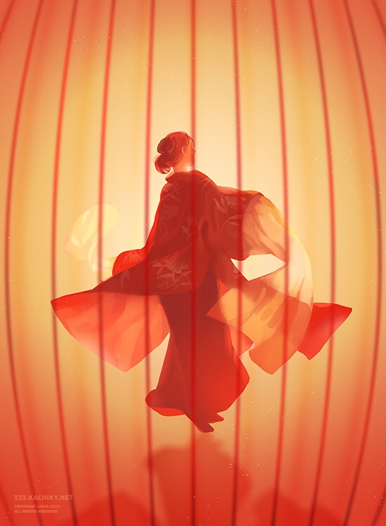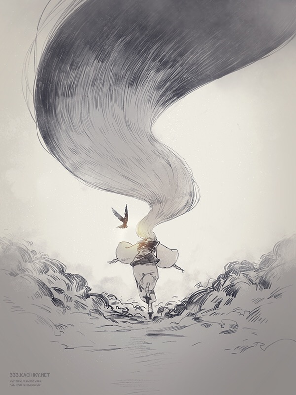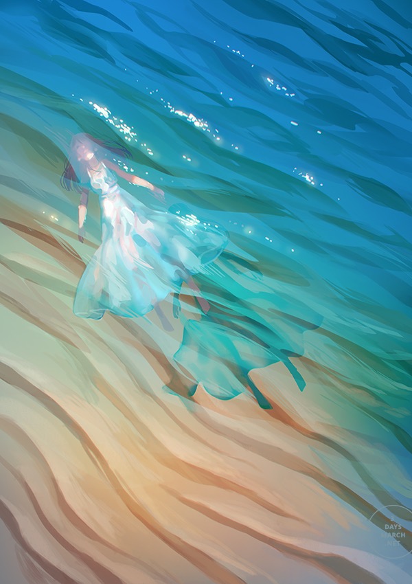 Most of their works are done in watercolor and touched up through computer programs. They are obviously a fan of Japanese media and feature many figures from famous anime and manga. Though this is the case, their work is mature and overwhelmingly beautiful.