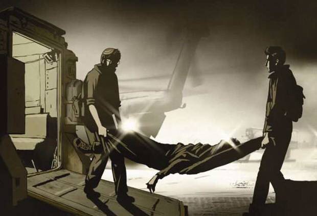It is not, as I supposed, rotoscope animation but a combination of Adobe Flash cutouts and traditional hand drawn animation. How did this work? Well all the drawings were cut into hundreds of pieces in order to create an illusion of movement. The result was a comic style atmosphere with gritty imagery. Do I like it? Well….