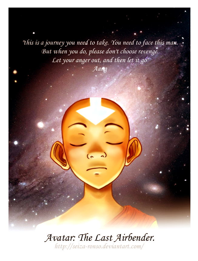This picture embodies an important aspect of the show: that there are other ways of bringing balance and peace in a chaotic world. Mostly, I like how the artist presented Aang as a character and found a saying which embodies his personality.
