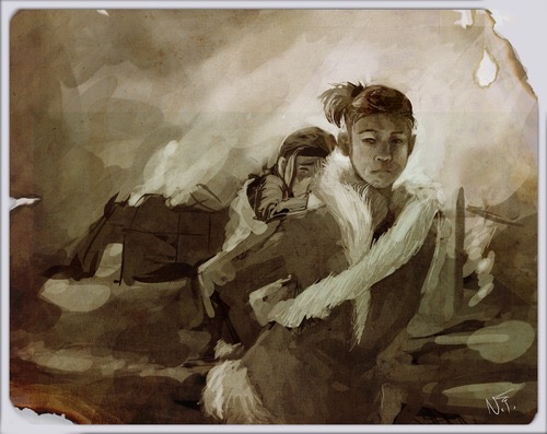 This might be an artwork done by one of the show’s concept artists but I am not sure. (As of now, I do not own the artbook). I like how the paints were used as well as the chiaroscuro. (Deep contrast between light and dark). I especially admire how they did the fingers and arrows.