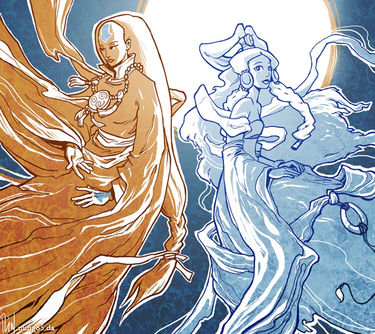 I like this one because it featured different subjects outside of team avatar (aka the five main characters). One of them is an Avatar. . . but I do not remember her name. The other is Princess Yue from Book one. I am interested to know why the artist made this picture. Too bad I have no idea who did it.