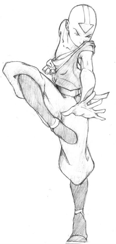 11. These are two sketches I found of Aang. It will become more obvious as I progress that I like drawings done of Aang the best. (Well, he is my favorite character. I will explain why later.) To me, these particular pencil drawings are charming.