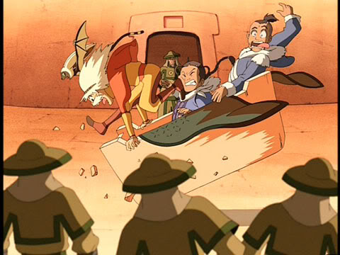 Anyway, another reason I like this episode is the chute scene. Specifically, I love that one shot (as shown above) ⬆️ of Aang dragging poor Sokka and Katara on their crazy ride. How they animated it was also very impressive.