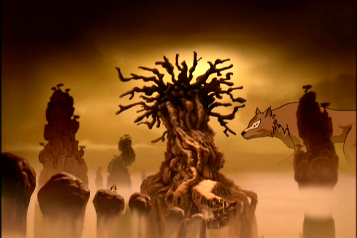 Second, I like the design of the spirit world, especially the colors. It feels. . . well, like an otherworldly realm taken directly from Indian mythology. (As in India). I love Indian phliosophy and culture so seeing this episode now after all the research I have done in college is incredibly gratifying.
