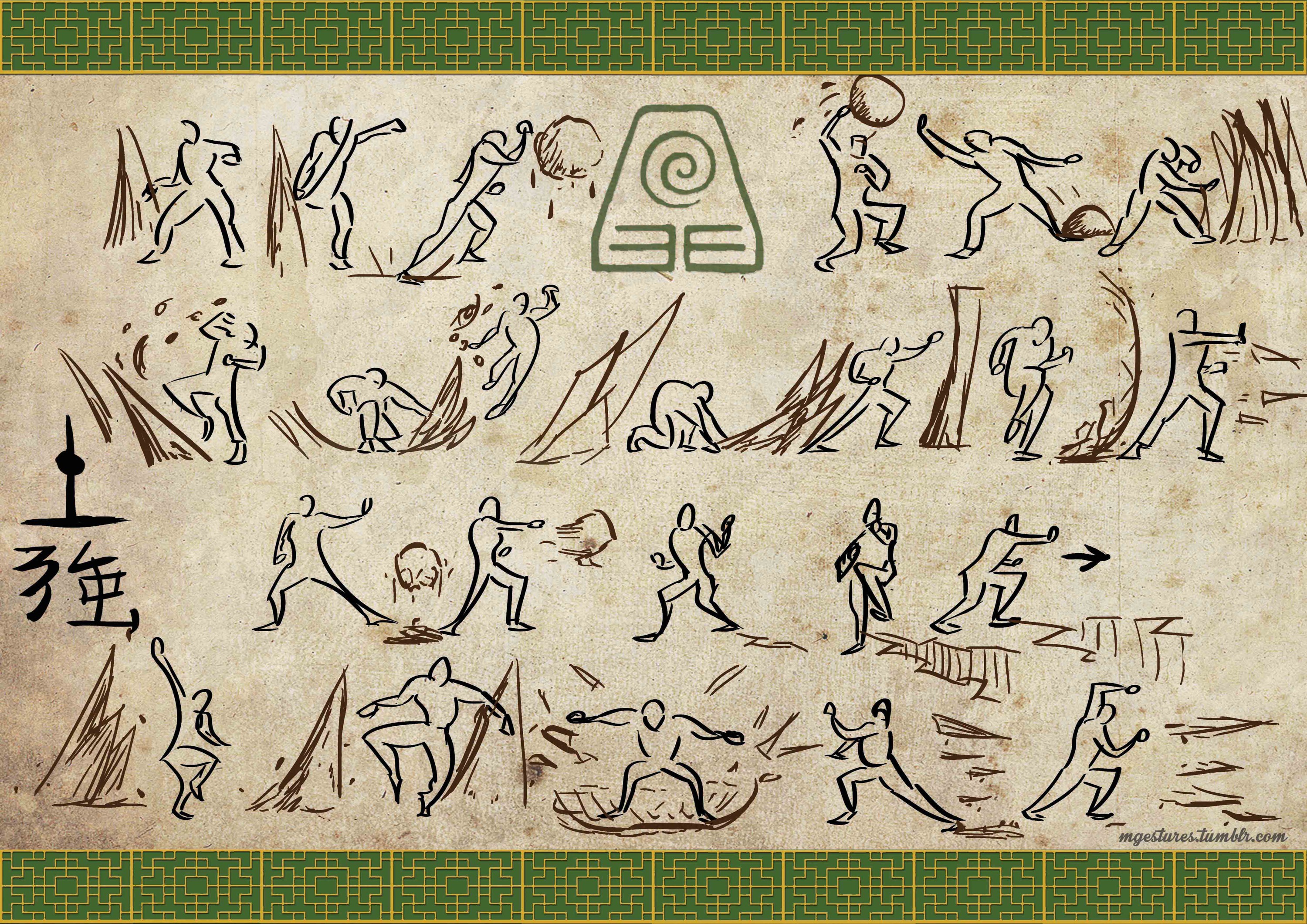 Avatar: The Last Airbender features one of the most visually fascinating magic systems. In the show, one’s unique “qi” or energy enables them through grounded movements and stances to manipulate water, earth, fire, or air. When creators Bryan Konietzko and Michael Dante DiMartino first came up with this idea, they knew bending should not just be a magical concept. Rather, the bending movements needed “to be grounded in reality” (pg. 26, Avatar: The Last Airbender, The Art of the Animated Series