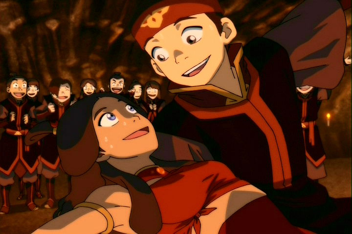 I have so many favorite moments: Aang lifting the top of a pillar and kicking it towards Ozai, Aang jumping around a pillar and pushing it, and Ozai shooting lightning at Aang being just a few of them. My definite favorite is when Aang jumps out of the rock pile in the Avatar state and grabs Ozai by the hair. I will not talk about it anymore or I will go on and on and on. . . If you are interested in my other feelings about it, check out my review and Top ten favorite episodes post. Also, I highly recommend watching the bonus features for Season 3 from the DVD’s. That is where they have the rough animation for Ozai and Aang’s fight as well as Zuko and Azula’s Agni Kai.
