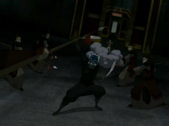 *Aang and Zuko’s escape is one of the longest sequences I have listed. I wanted to include Zuko’s fight with the guards outside Aang’s cell (especially for the one five second clip of Zuko dousing the fire guard with a bucket of water and knocking him out) but decided to focus on their journey to the outer wall of the fortress. I liked seeing Zuko use swords to skillfully overcome multiple opponents. My favorite shot is of him sliding his sword down a spear. I also loved seeing Aang’s airbending. It is here I understood how his style worked as a defensive technique. Come to think of it, I probably love airbending so much because of this episode. All in all, this sequence is a very well choreographed and implemented piece of animation.
