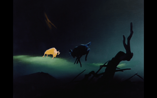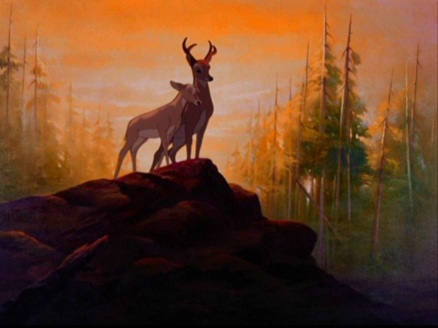 What makes Bambi stand out among the earlier Golden Disney films is how it portrays nature. The fire which engulfs the forest is especially eye-catching to me as well as the grey, still shots of winter. This is definitely not one of my favorite films, but I do think it is a visual feast despite its age.