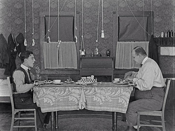 For today we have The Scarecrow (1920), a short 20 minute short directed by Buster Keaton and Edward F. Cline about two bachelors played by Keaton and Joe Roberts living in a highly ingenuitive home, designed to be as convenient and space saving as possible.