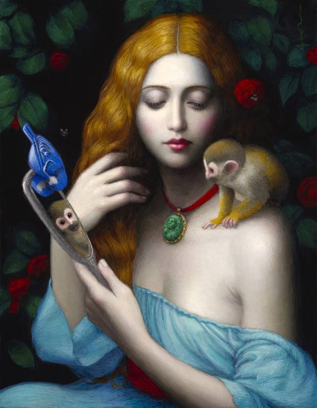 In a way, she reminds me of a French artist I mentioned years ago named Anne Bachelier (ARTICLE HERE) who also features women in her paintings and uses psychological themes to convey ideas on the human condition through the atmosphere, lighting, and engaging well-placed symbolism throughout each artwork.