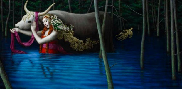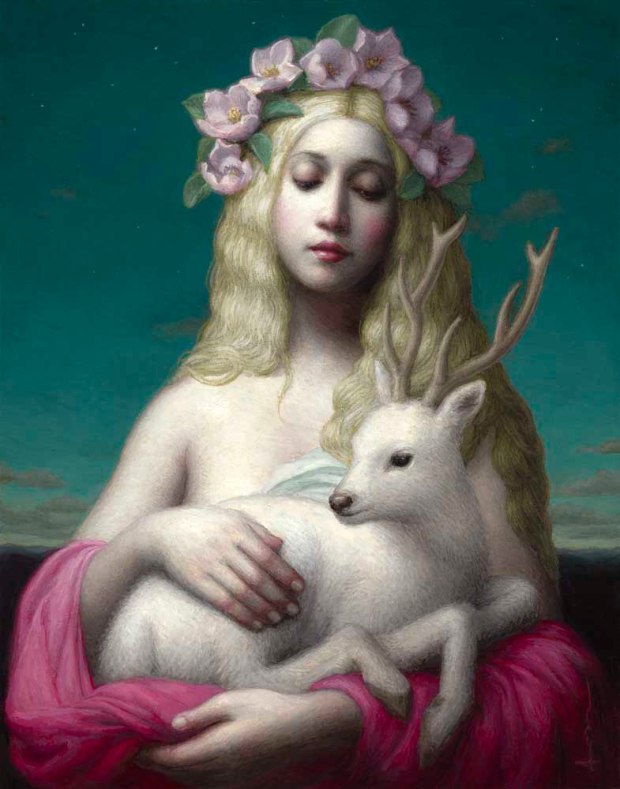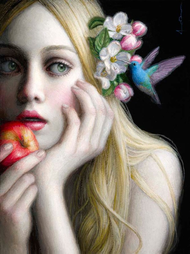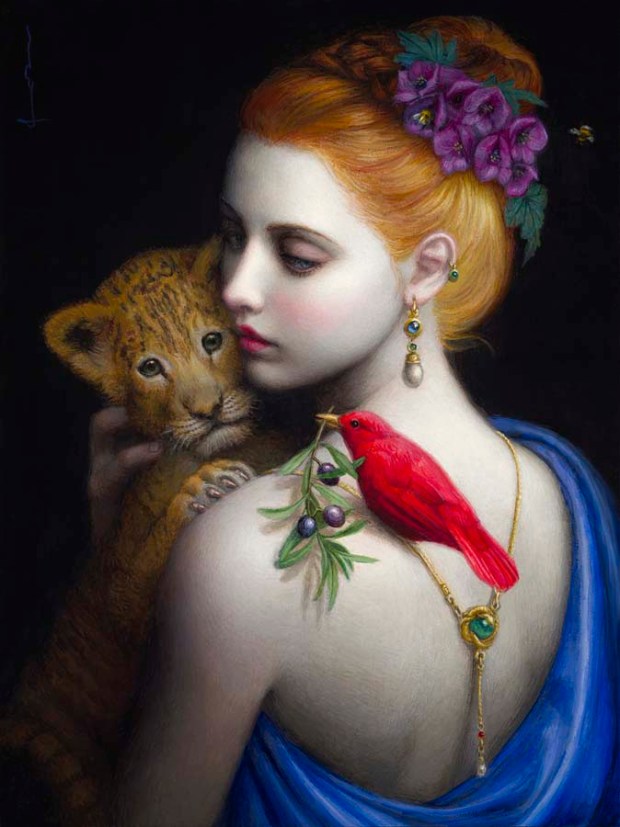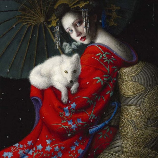 Artist Chie Yoshii was born in Japan in 1974 and earned her BFA at Massachusetts College of Art in 2000. Galleries around the world like the URBAN NATION Museum have featured her myriad of artworks centered on the relationship between human psychology and mythological archetypes. Critics and journalists compare her traditional Flemish artists who valued simple portrayals of natural beauty through landscapes, portraits, and still lifes. As her official website states,