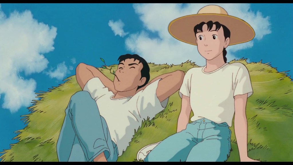 The plot revolves around Taeko Okajima, a 27- year old office worker leaving for a few weeks to go work in the country for some of her sister’s in-laws. As she goes home, travels, and works, she regularly reflects on her 5th-grade self. As this continues to happen, she wonders if maybe she was yet again “a chrysalis” on the verge of becoming something. She pondered how maybe, “perhaps (her) fifth grade self (was) trying to tell (her) a new way to fly.” (Quote from the movie.)