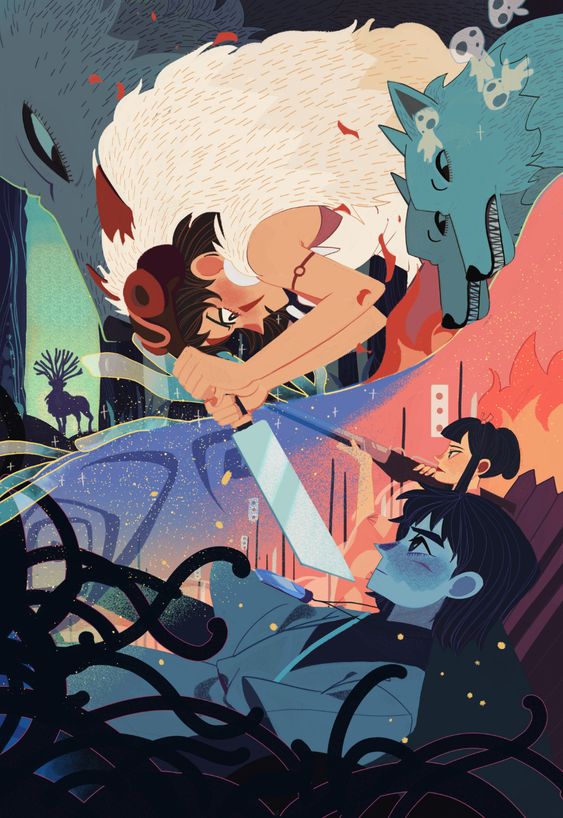 What a wonderful rendition of Hayao Miyazaki’s animated film Princess Mononoke! If I had never seen this movie before, I would instantly be entranced by the energy and vibrancy in this artwork.