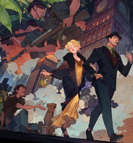 I wanted to find out the story behind this artwork but had little to no success. I believe this is a homage to the late 1910s and 1920s in America. But that’s just me guessing. I’m wondering if the homeless man is still caught up by the war he fought in and has to beg to survive.