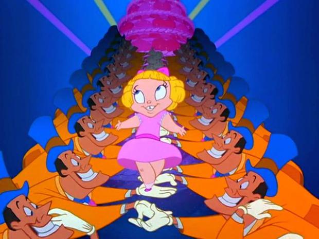 Speaking of glamour and pomp, this sudden musical number sung by Tom Kenny (think Ice King and Spongebob) blew me out of the water! What stood out for me wasn’t necessarily Kenny’s beautiful voice but the staging and setup for this song. It was reminiscent of something like “Pink Elephants on Parade” or Disney’s Alice and Wonderland (1950) with its more cartoonish imagery. Too bad Mumbo Jumbo didn’t show up much after this episode.