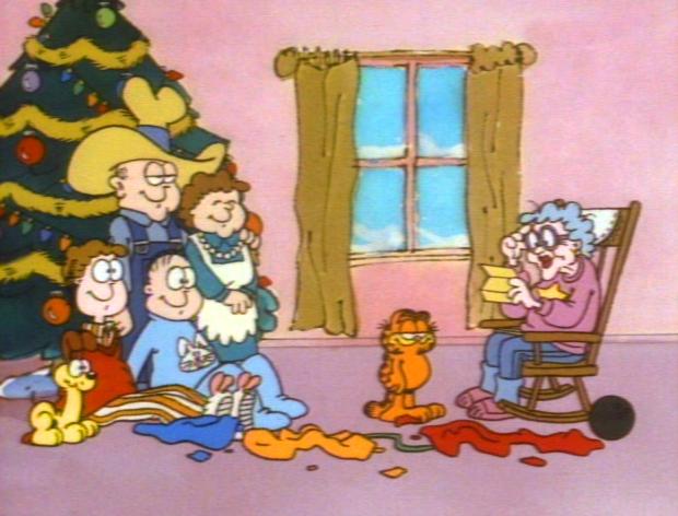 Garfield, Jon, and Odie go to Jon’s grandmother’s house for Christmas, where Garfield finds a present for Grandma.